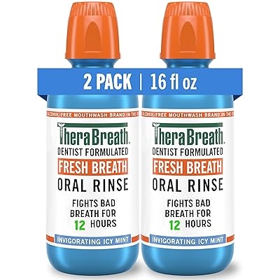 TheraBreath Fresh Breath Mouthwash, Icy Mint Flavor, Alcohol-Free, 16 Fl Oz Pack of 2