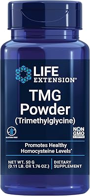 Life Extension TMG Powder – Trimethylglycine – Helps Maintain Normal Homocysteine Levels, Heart Health – Gluten-Free, Non-GMO, Vegetarian – Net Wt. 50 g 0.11 lb. or 1.76 oz.