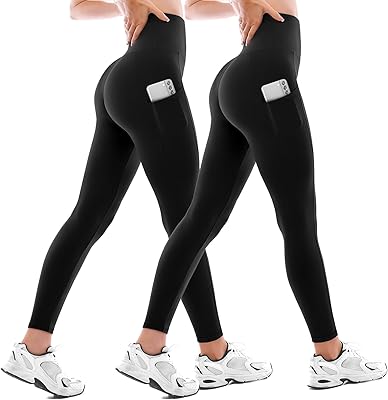 Walifrey Leggings with Pockets for Women 2 Packs,Womens High Waisted Yoga Leggings Gym for Workout