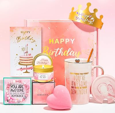 MUJUZE Birthday Gifts Set for Women, Birthday Gift Box Set, Happy Birthday Gifts Basket for Women, Gift Sets for Best Friend , Mug Gifts Set Suitable for Sisters,Grilfriend,Pink Present Box for Her